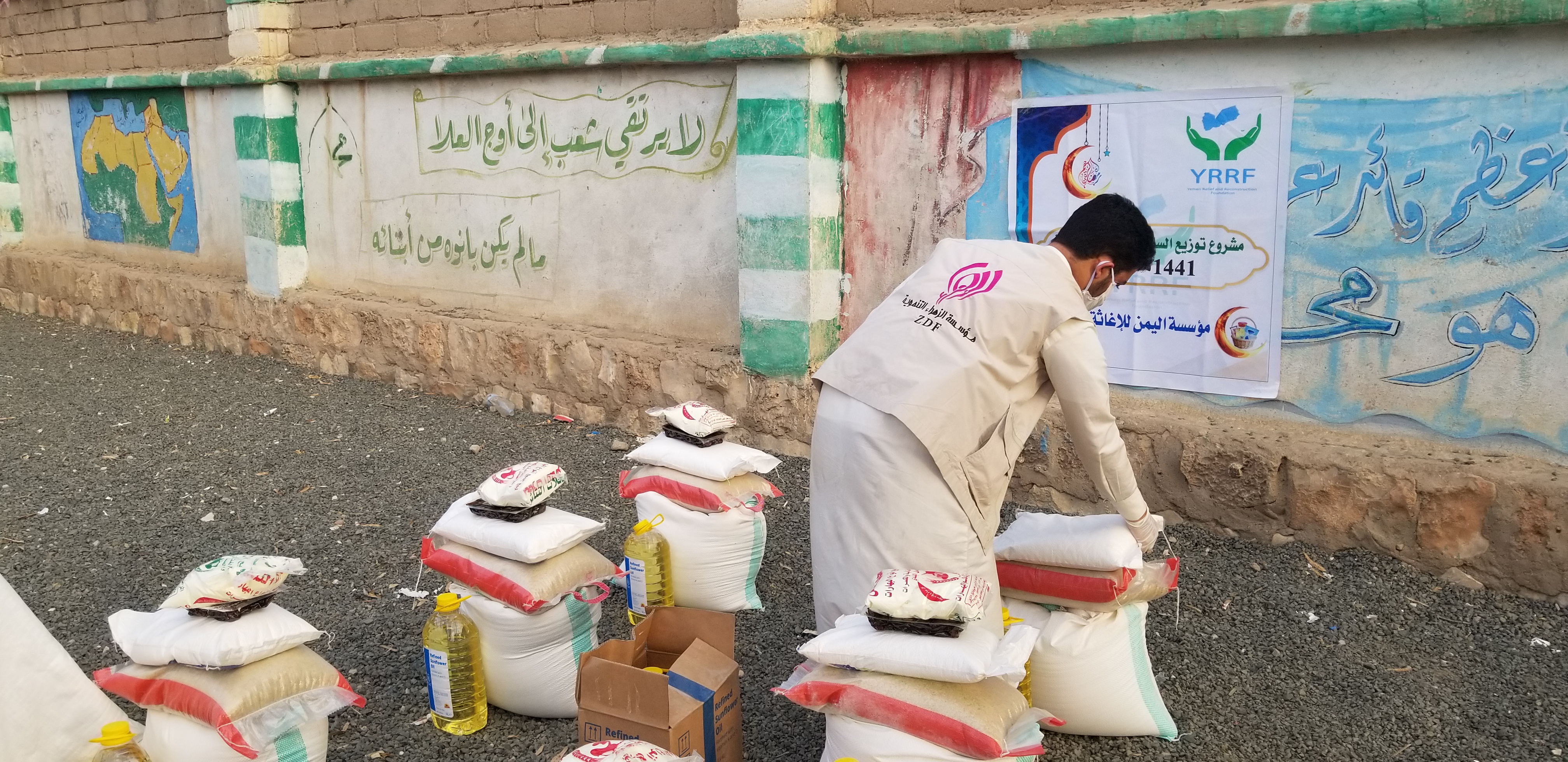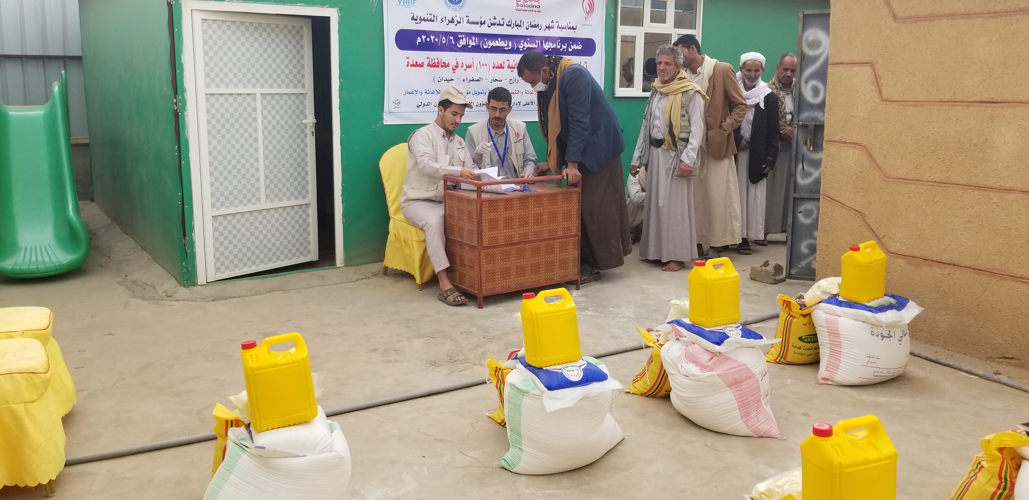 بمناسبة شهر رمضان المبارك للعام1441هــ ضمن برنامجها السنوي ( ويطعمون ) دشنت مؤسسة الزهراء التنموية توزيع السلة الغذائية الرمضانية لعدد ٢٠٠ اسره في المديريات (صعدة ــ رازح ــ سحار ــ الصفراء ــ حيدان ) بمحافظة صعدة.