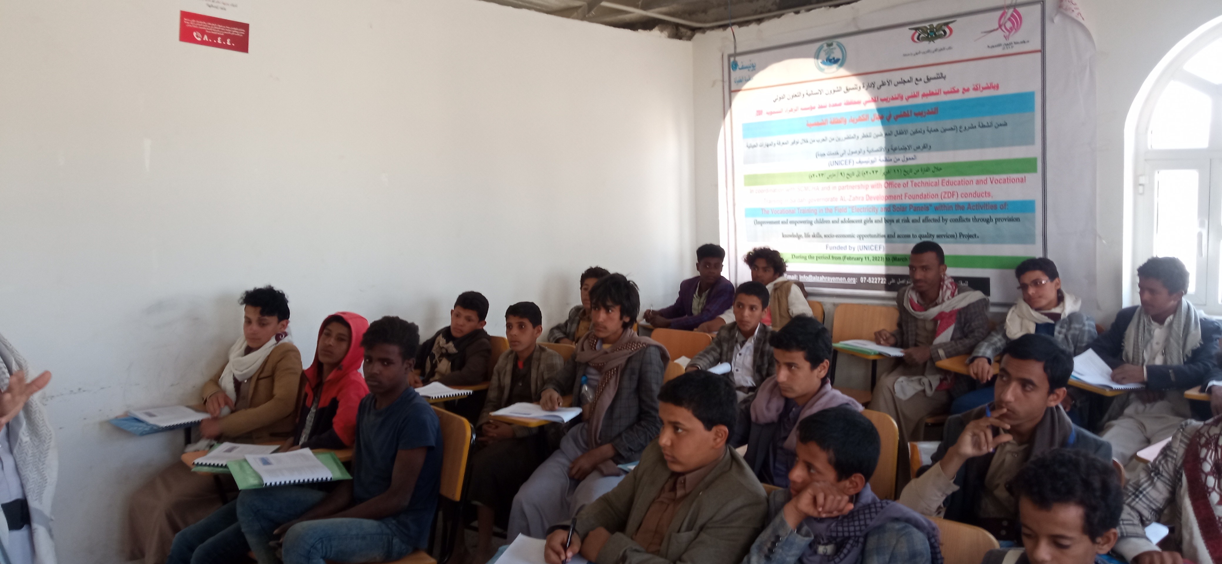 وذلك بالتنسيق مع المجلس الأعلى لإدارة وتنسيق الشؤون الإنسانية والتعاون الدولي وبالشراكة مع مكتب التعليم الفني والتدريب المهني بالمحافظة صعدة وبتمويل من منظمة اليونسف (UNICEF).