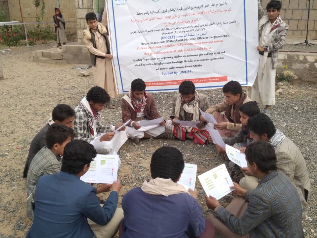 Al-Zahra Development Foundation (ZDF) has completed awareness-raising activities through morning assembly (240 sessions) as well as peer to peer education (320 sessions), carried out by a number of students in 10 schools and 2 CBOs targeted by activities of “Improving protection and empowering children and adolescents girls and boys at risk and affected by conflict through provision knowledge, life skills, socio-economic empowerment and access to quality services in Sa’dah” project in both (Sa’dah – Al-safra’a) districts. These sessions took place during the last three months from January to March, which had many awareness messages including importance of life skills, importance of education, effects of dropping out of school and some other health topics.