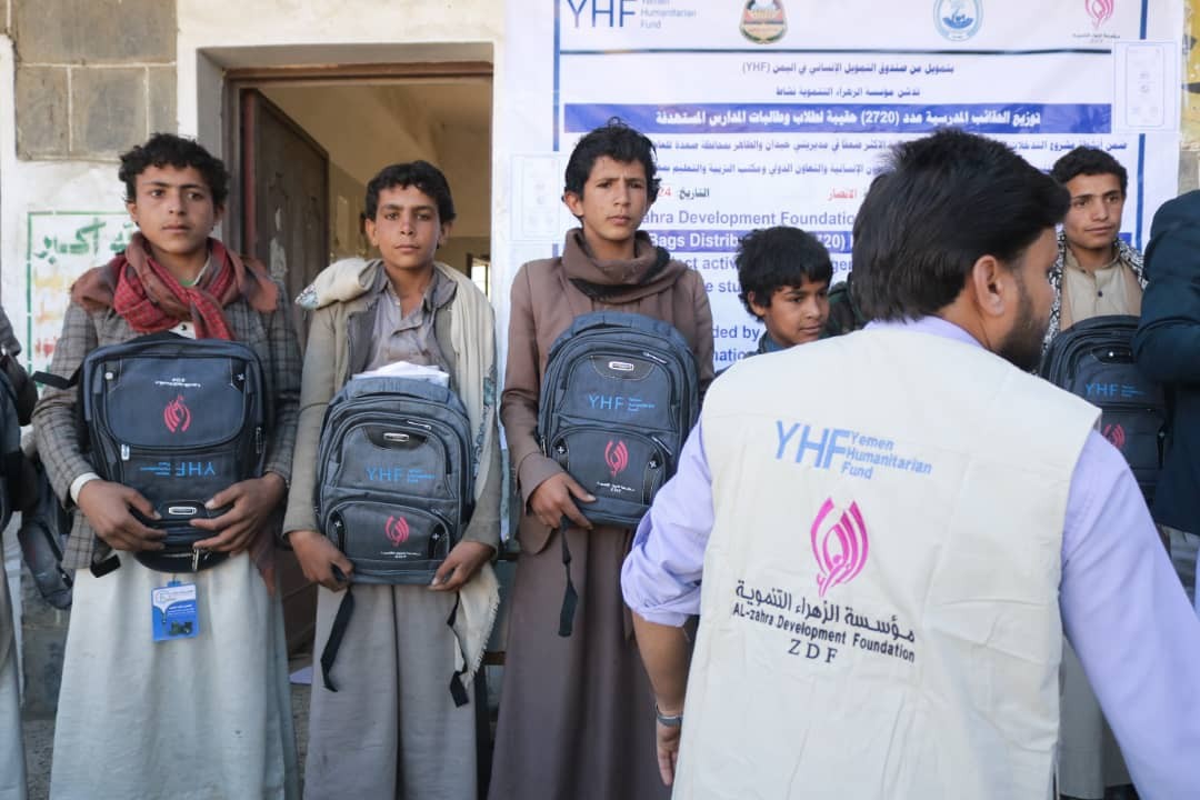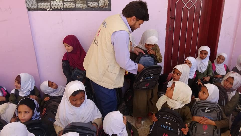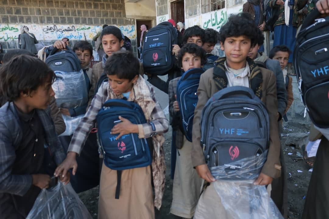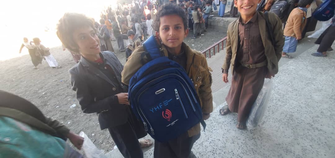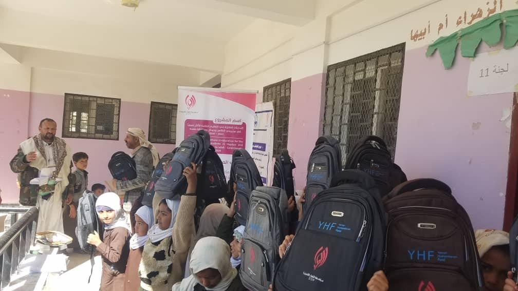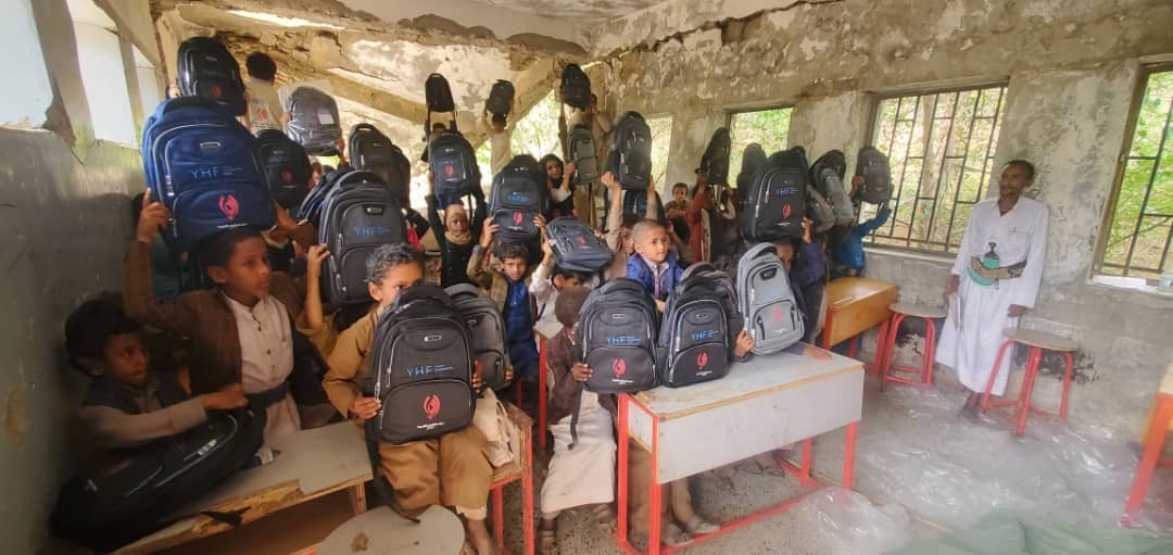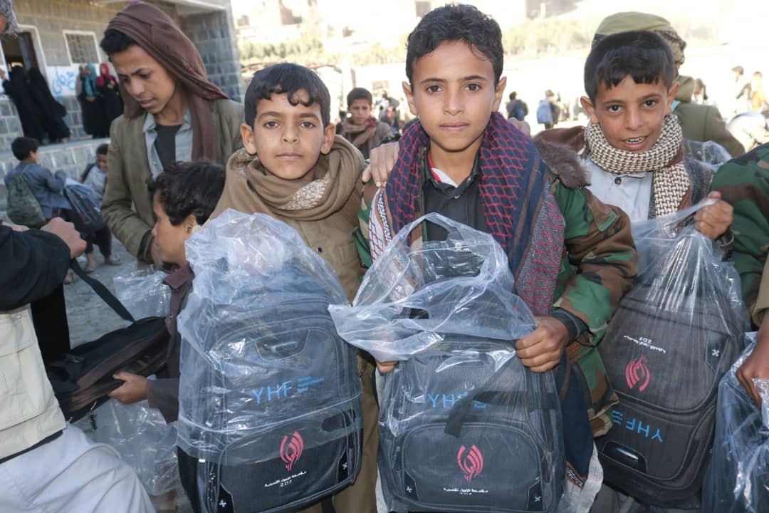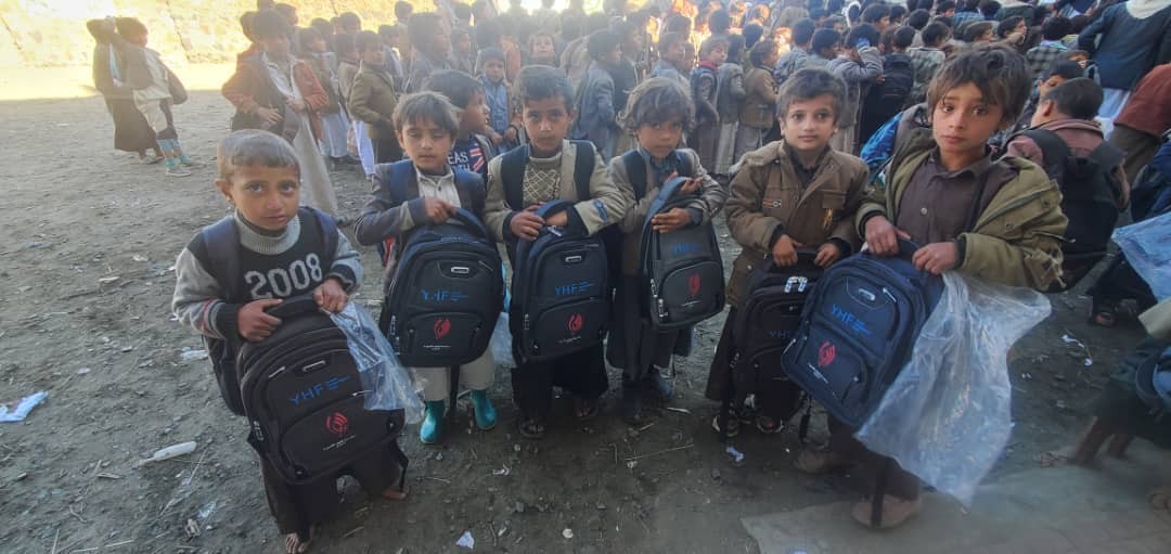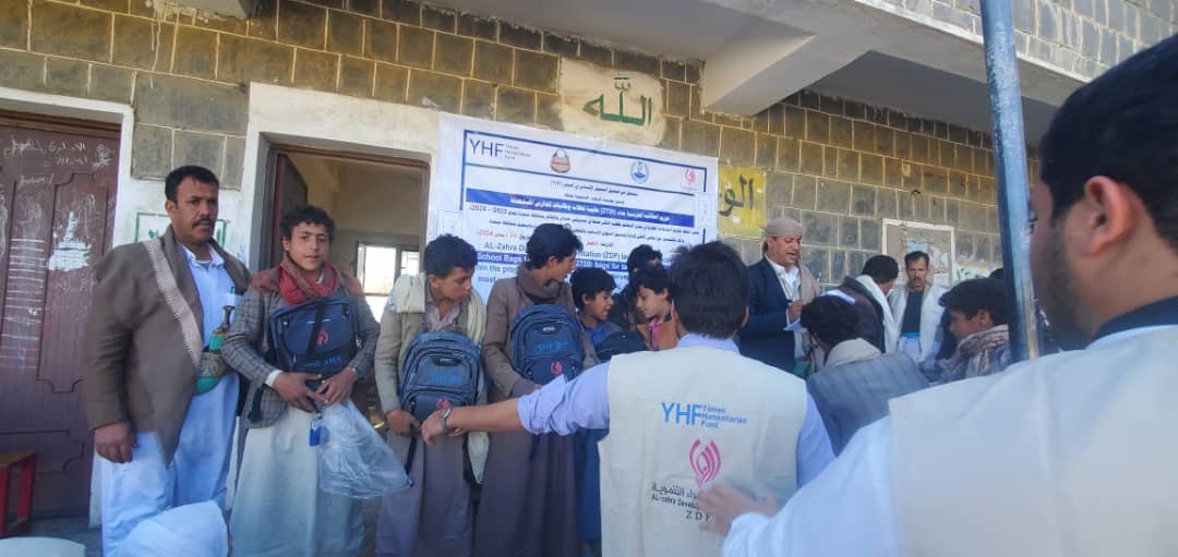 توزيع عدد (2720) حقيبة مدرسية للطلاب والطالبات الأكثر احتياجا في المدارس بمديريتي حيدان والظاهر بمحافظة صعدة. Distribution of (2,720) school bags for the neediest students in schools in Haidan and Dahar districts of Sa ‘ada governorate.