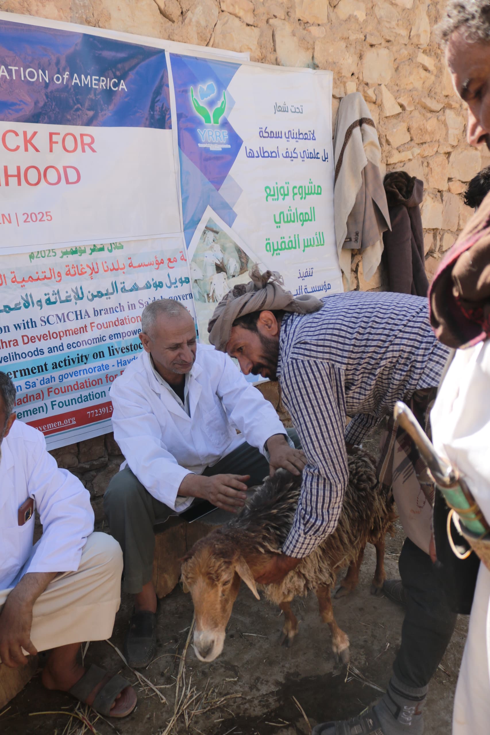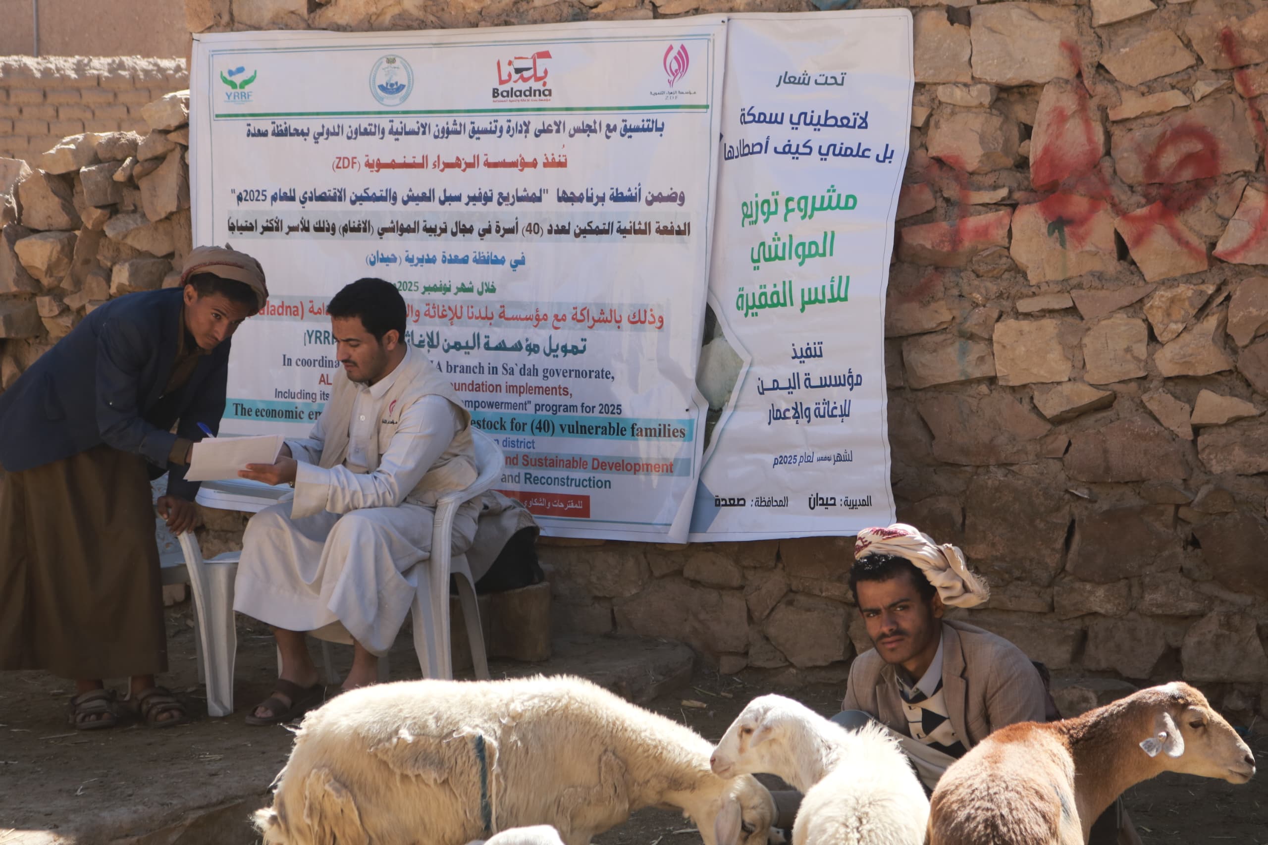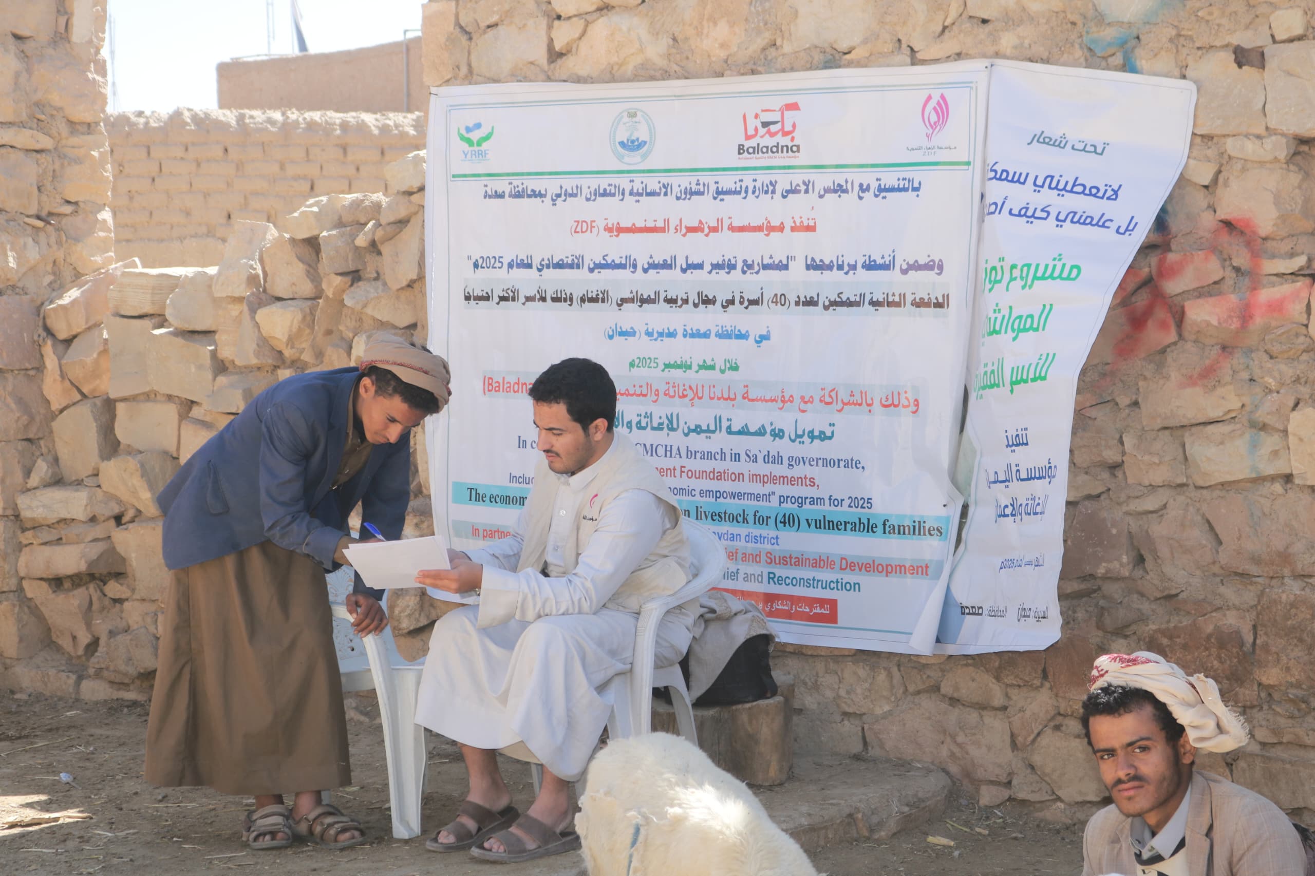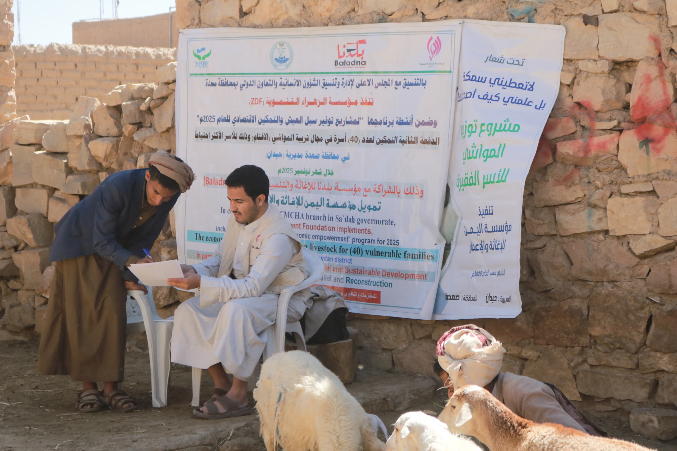 مؤسسة الزهراء التنموية (ZDF) تنفذ مشروع توزيع “40” حالة أغنام في (مديرية حيدان) بتمويل من مؤسسة اليمن للإغاثة والإعمار وبالشراكة مع مؤسسة بلدنا للإغاثة والتنمية المستدامة