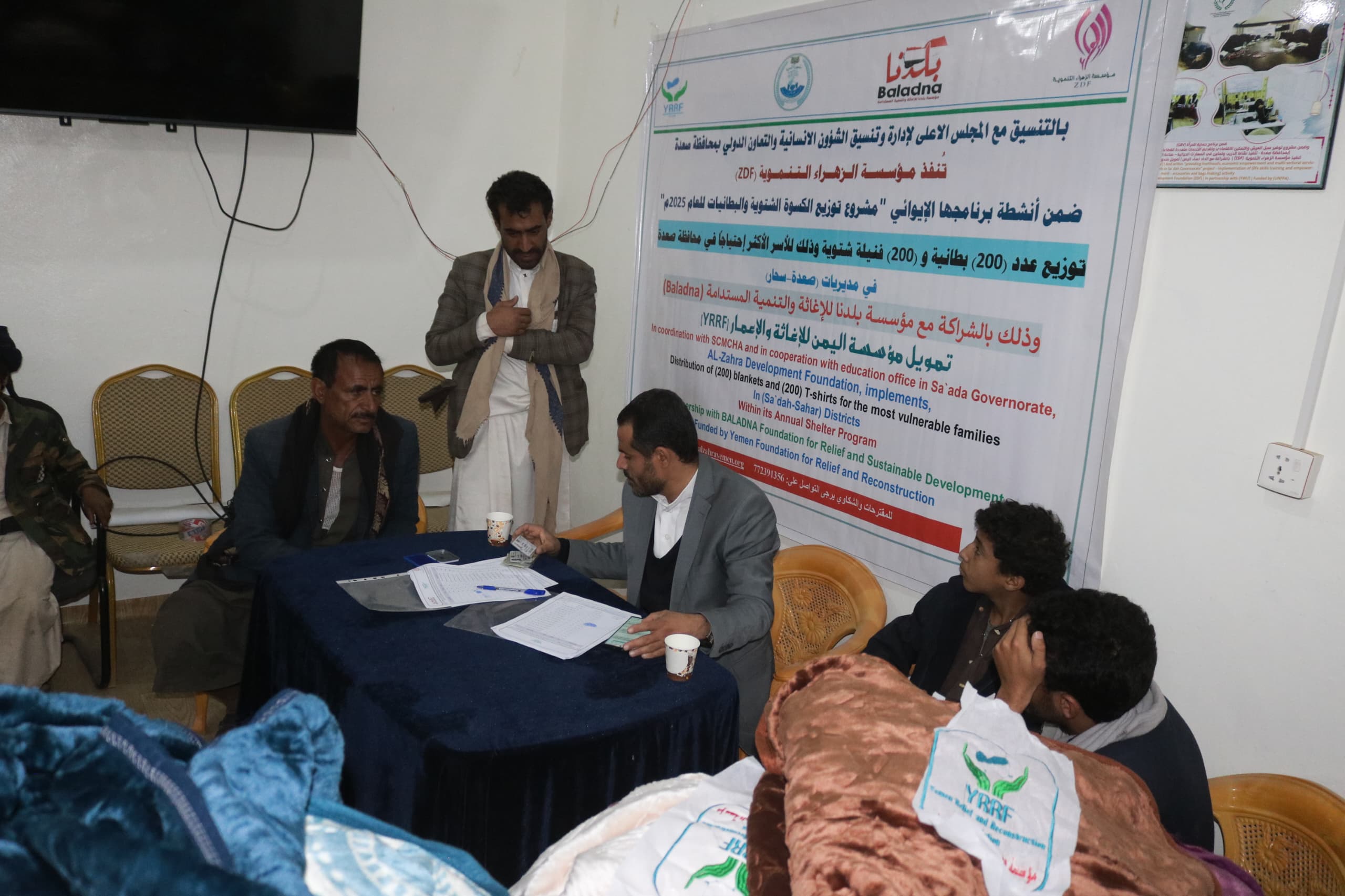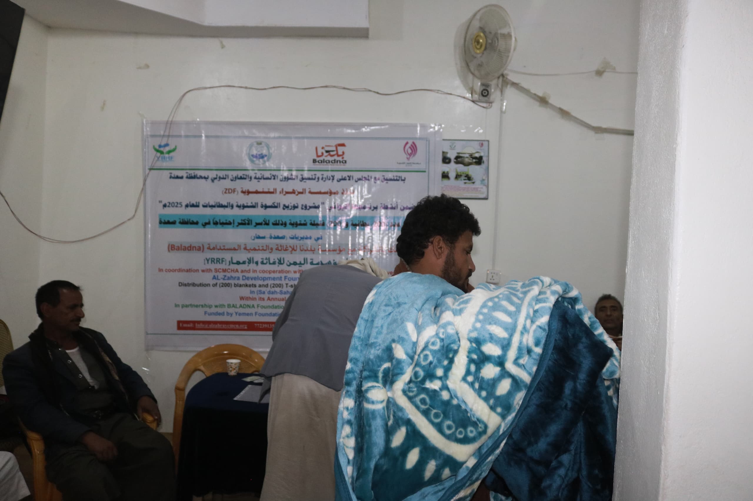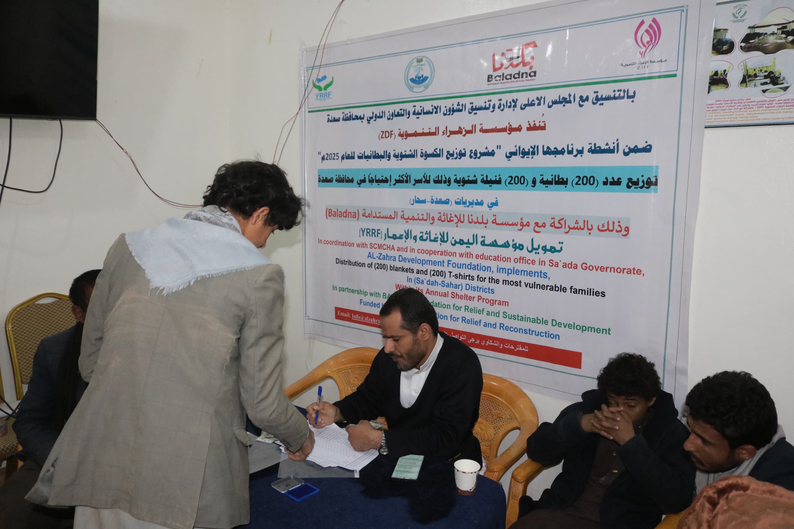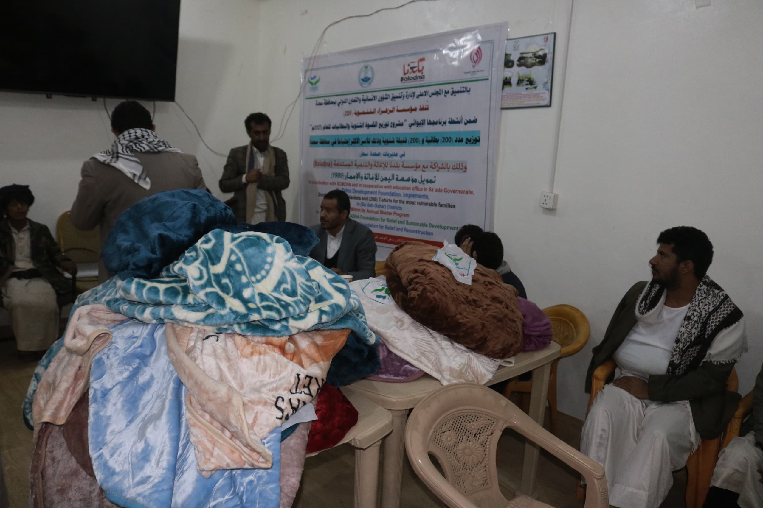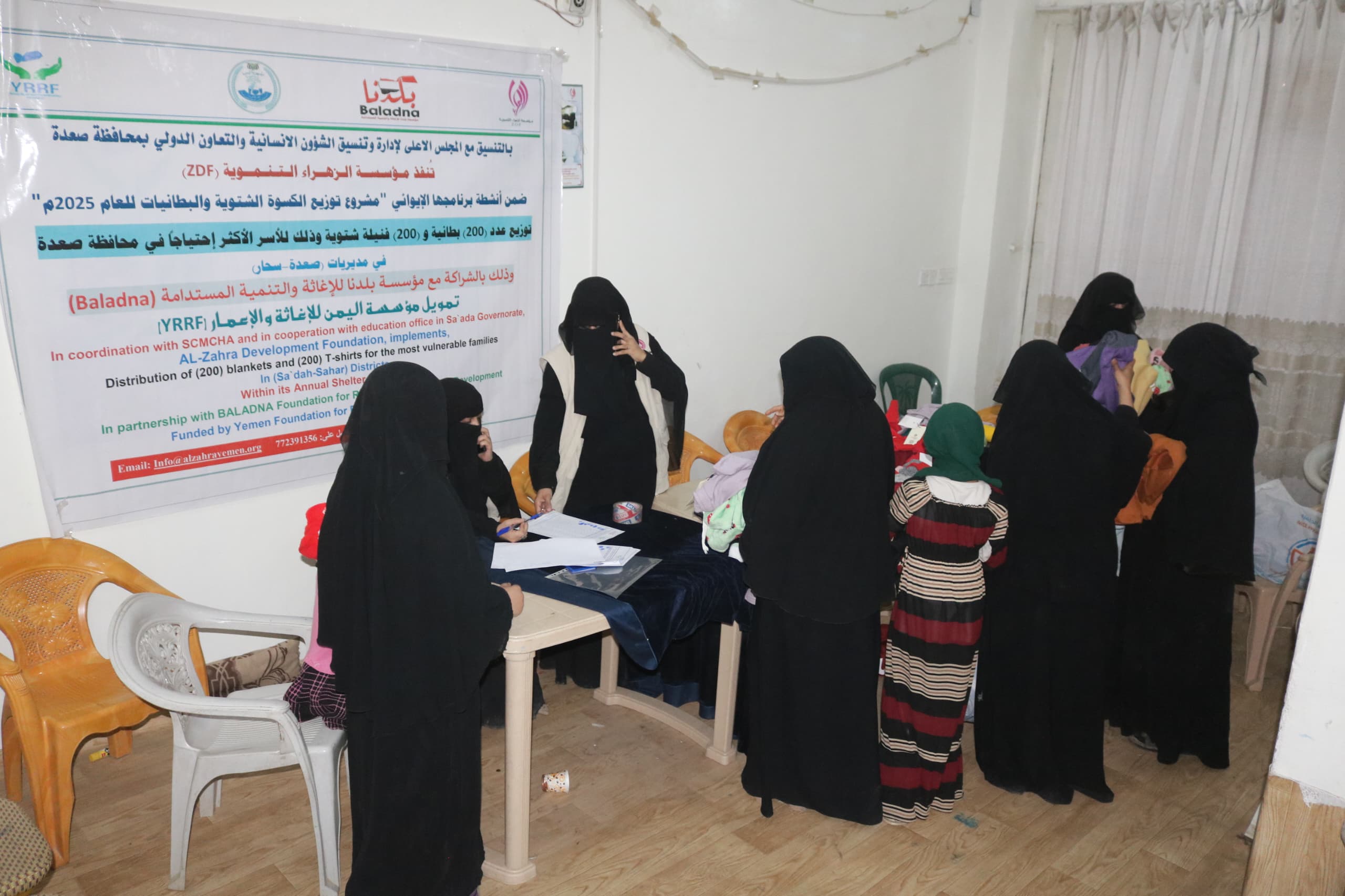 دشنت مؤسسة الزهراء التنموية مشروع توزيع الكسوة الشتوية في مديريتي (سحار – حيدان) بمحافظة صعدة والذي شمل توزيع (200) بطانية و(200) فنيله شتوية استهدفت الأطفال من الأسر الأشد احتياجاً وذلك بتمويل من مؤسسة اليمن للإغاثة والإعمار و بالشراكــة مع مؤسـســــة بــلــدنا لـلإغاثـة والــتــنــمـيـــة الـمستــدامـة