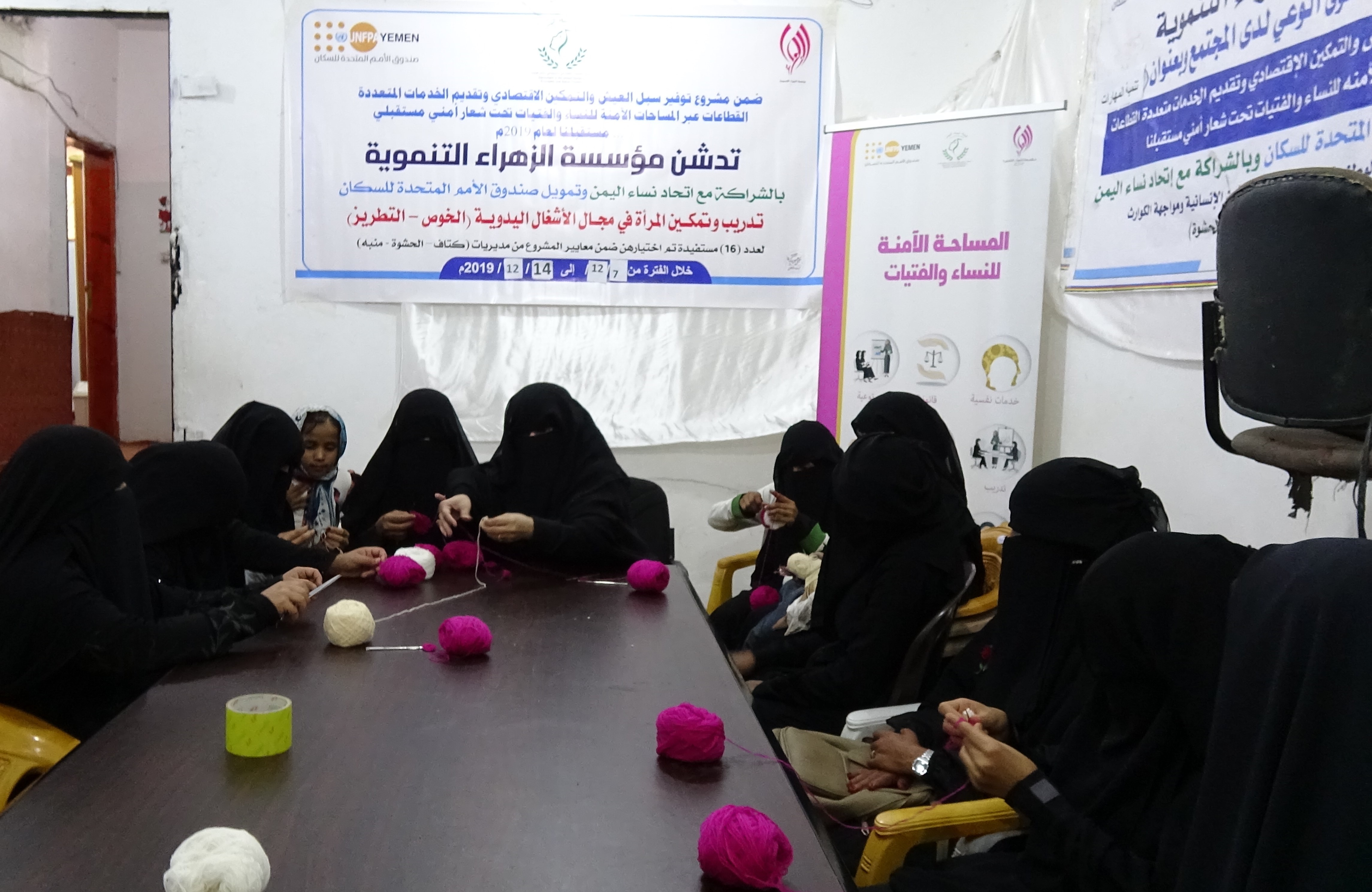 قامت مؤسسة الزهراء التنموية (ZDF ) اليوم السبت الموافق 14/ ديسمبر / ٢٠١٩م بتمكين عدد (١6) مستفيدة في مجال الأشغال اليدوية (الخوص والتطريز ) من النساء من مديريتي (منبة ،كتاف، الحشوة) عبر المساحة الآمنة للنساء والفتيات بالشراكة مع إتحاد نساء اليمن وبتمويل من صندوق الأمم المتحدة للسكان.